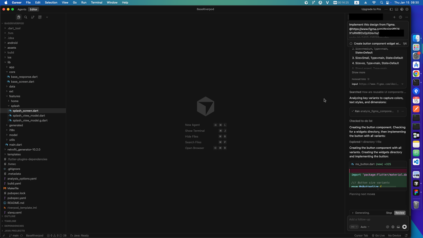- Tạo Full Screen: AI sẽ tự động phân tích cấu trúc màn hình (Header, Footer, Content) và gợi ý cấu trúc Scaffold tương ứng. Nếu có hình ảnh (.png, .jpg), nó thậm chí còn hỗ trợ xuất file vào thư mục assets/ và cập nhật pubspec.yaml.