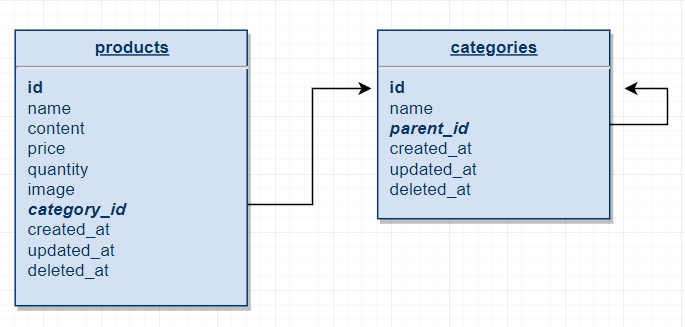 Bạn đang xây dựng một trang web bán sản phẩm (quần áo chả hạn), việc thiết kế database cũng đơn giản thôi. Có 2 bảng cơ bản sau: